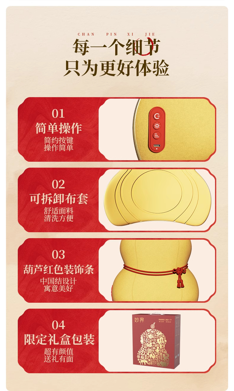 妙界(MIAOJIE)M13葫芦腰背按摩仪缃叶黄普通版(单位:台)