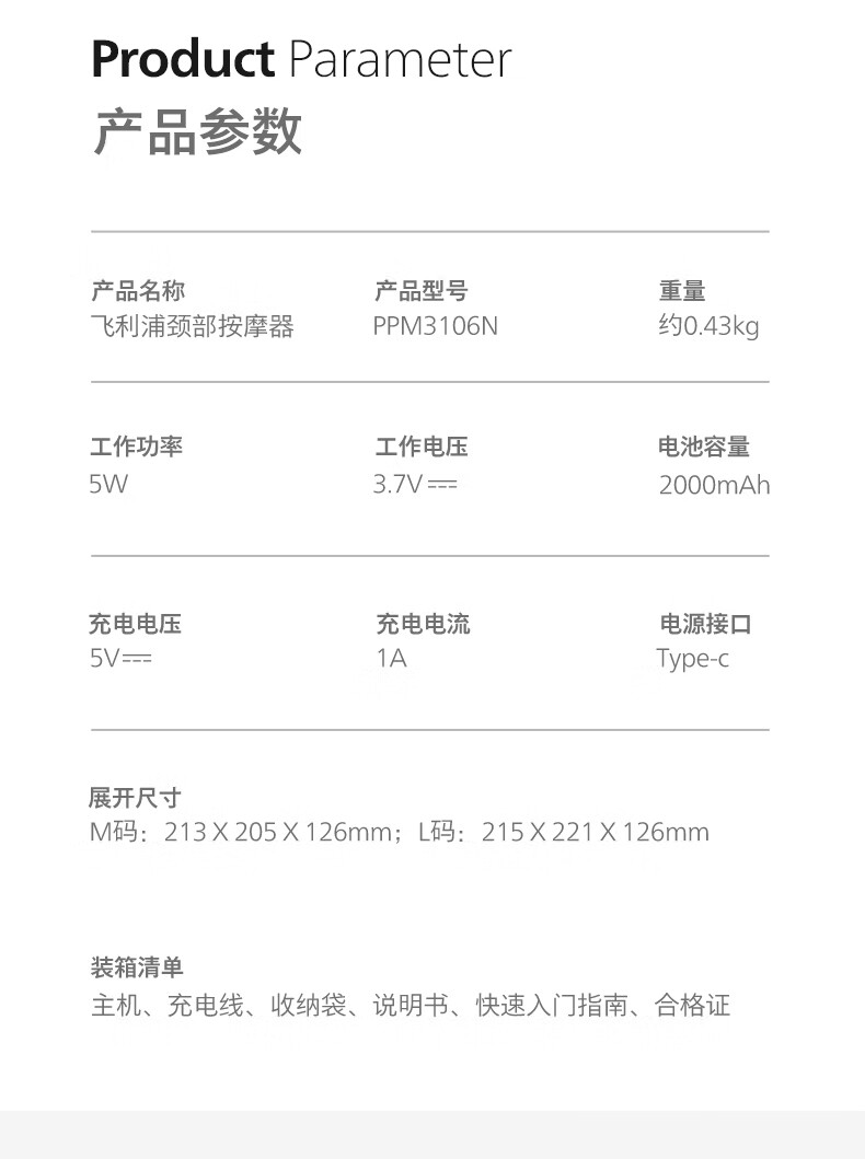 商品标题:飞利浦(PHILIPS)PPM3106N按摩器(单位:台)