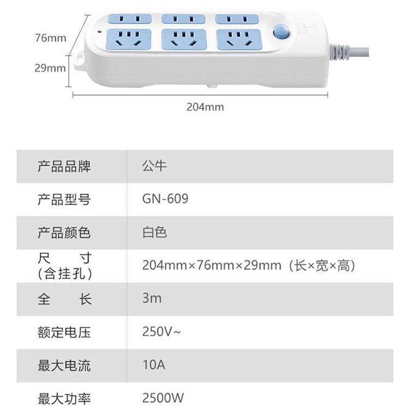 公牛GN-609总控6位插排3米50个/箱(个)