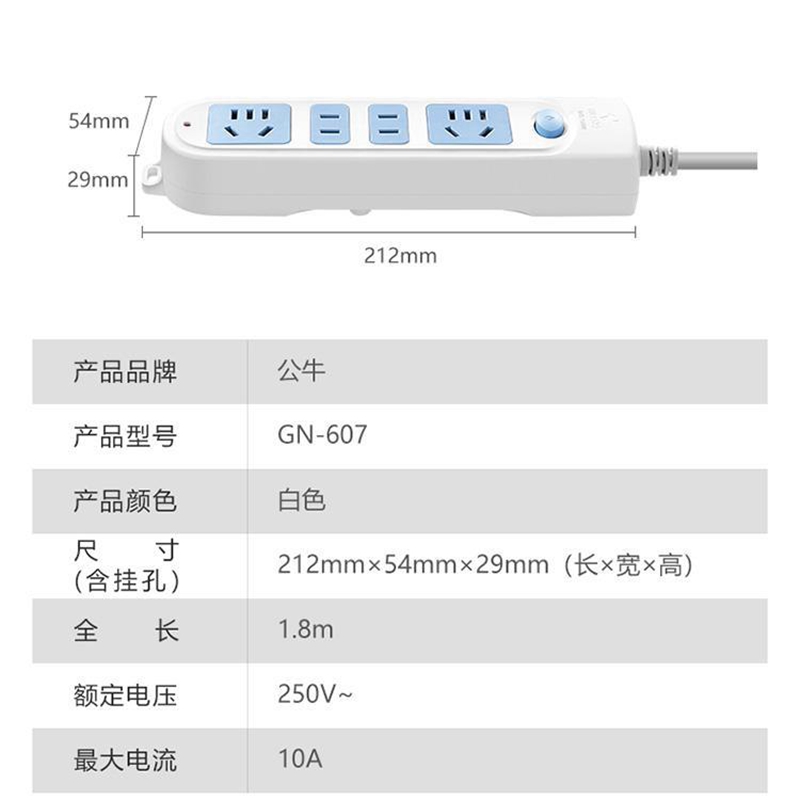 商品标题:公牛GN-607总控4位插排1.8米60个/箱(单位:个)