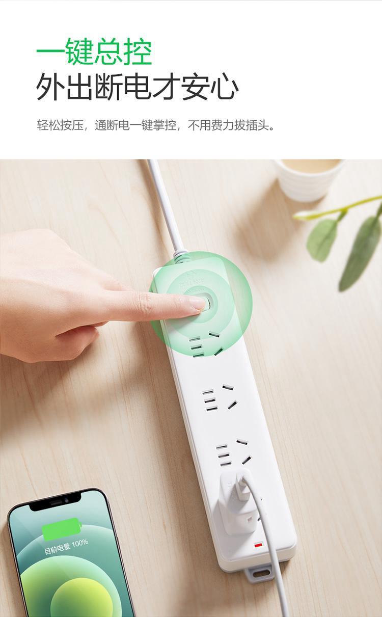 公牛GN-410总控4位插排白色3米50个/箱(单位:个)