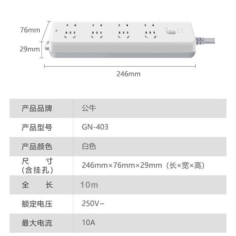 商品标题:公牛GN-403总控8位插排白色10米20个/箱(单位:个)
