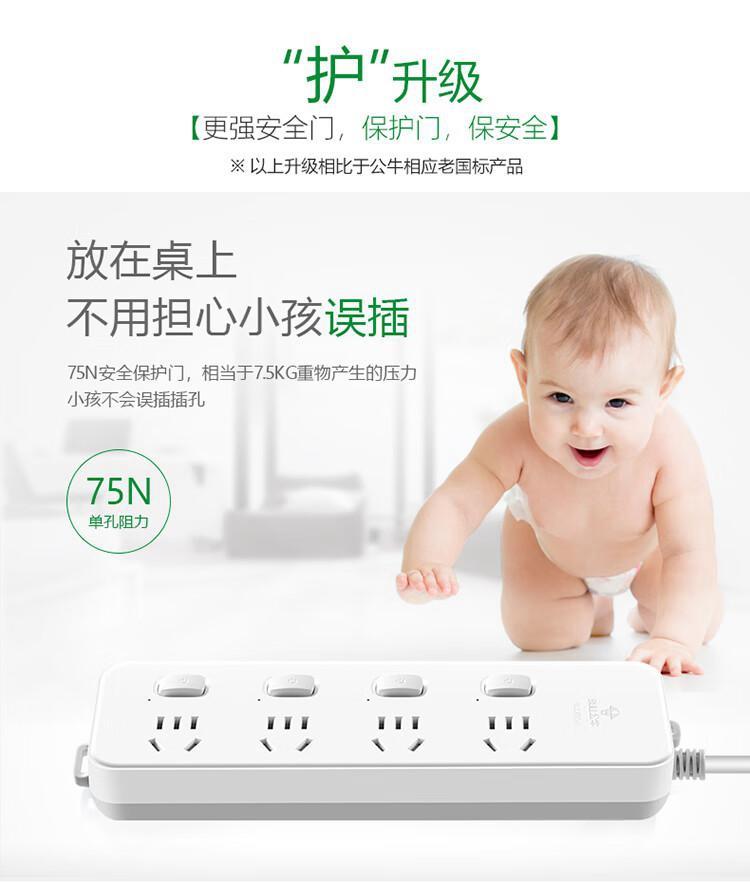 公牛GN-311分控4位插排白色3米30个/箱(单位:个)