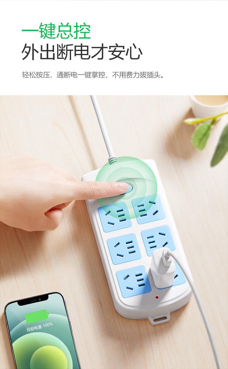 公牛GN-603总控6位插排1.8米30个/箱(个)