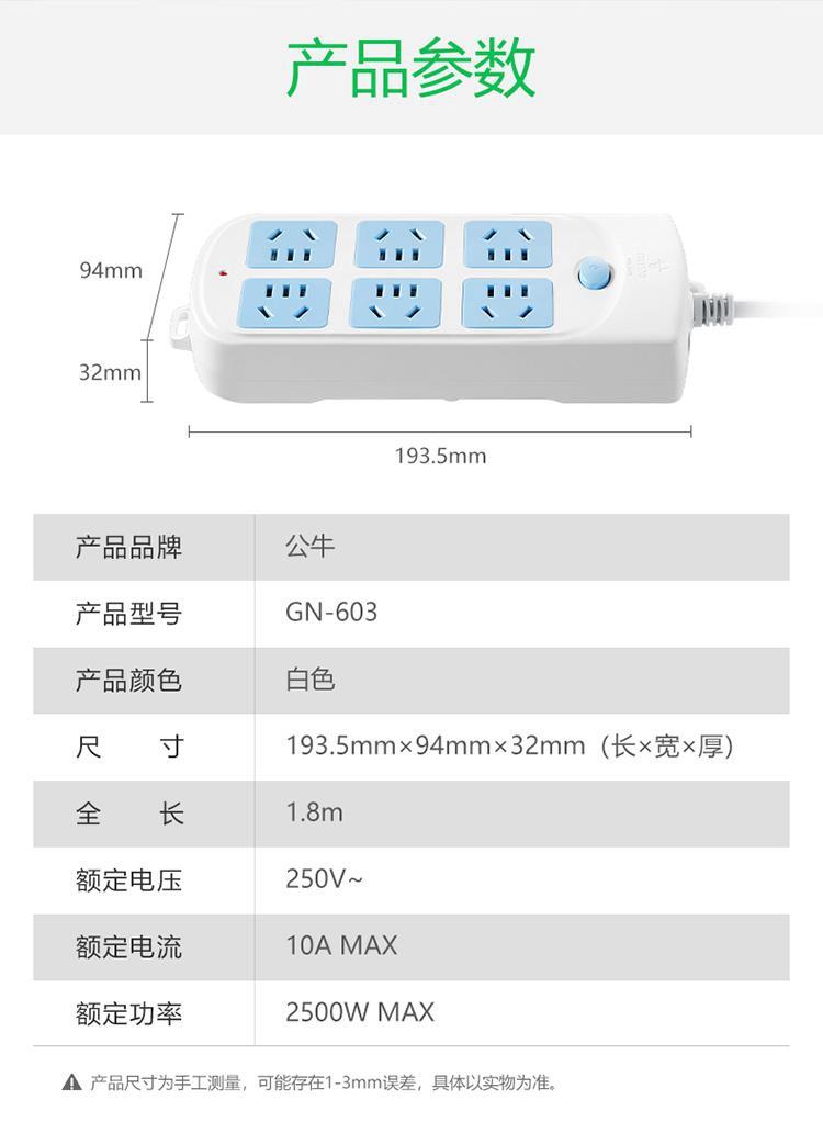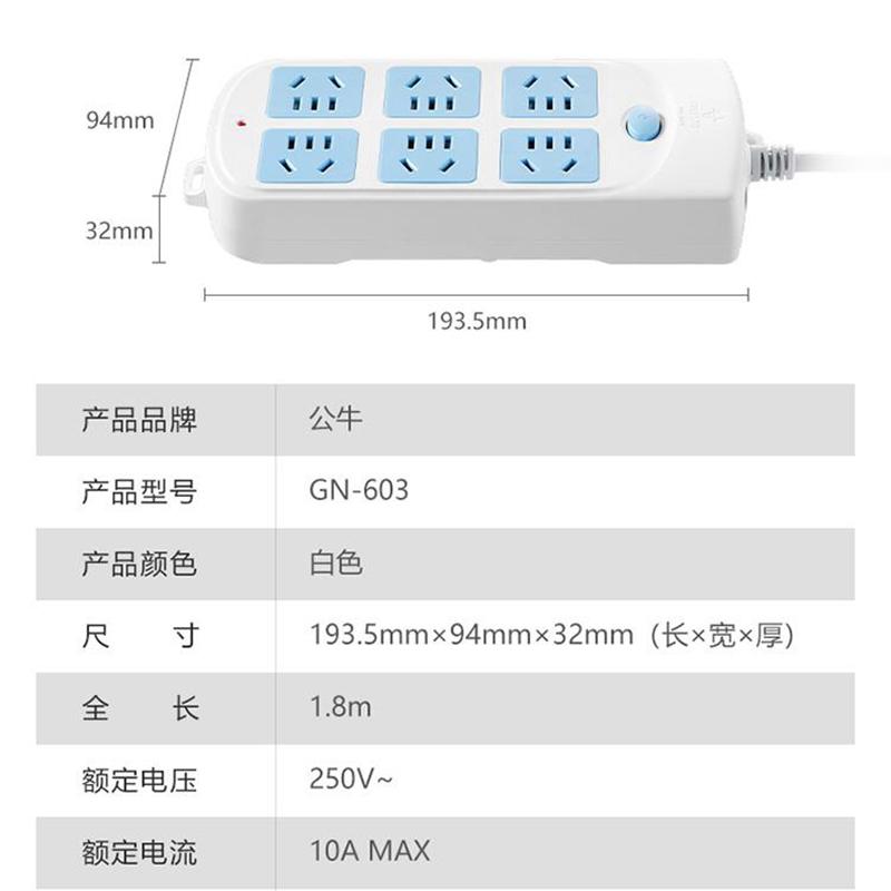 商品标题:公牛GN-603总控6位插排1.8米30个/箱(个)