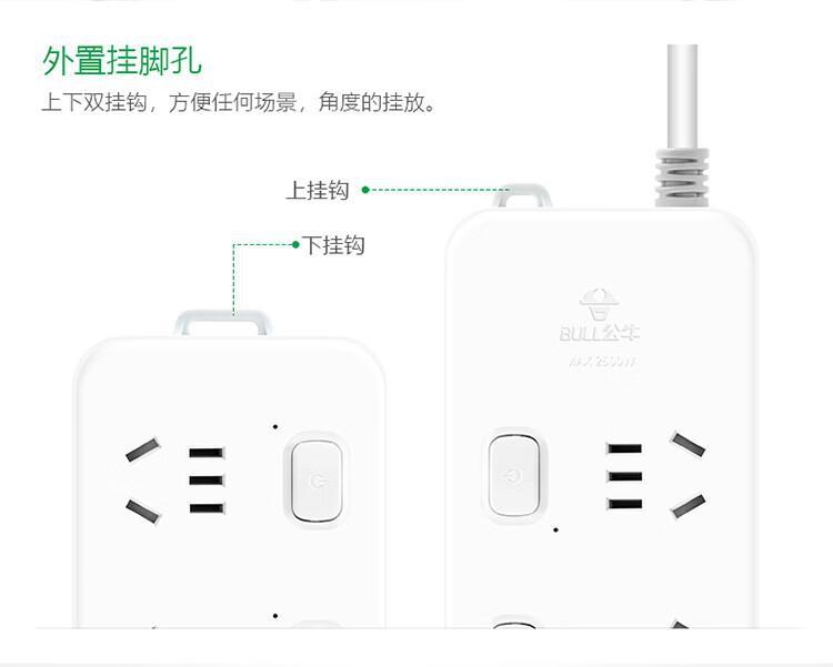 公牛GN-312分控5位插排白色3米30个/箱(单位:个)