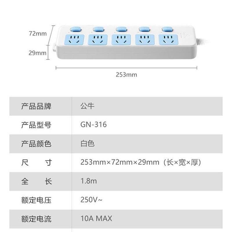 公牛GN-316分控5位插排1.8米(单位:个)