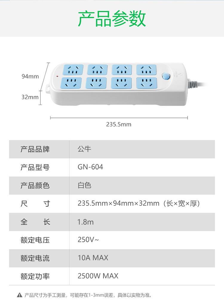 商品标题:公牛GN-604总控8位插排1.8米(个)