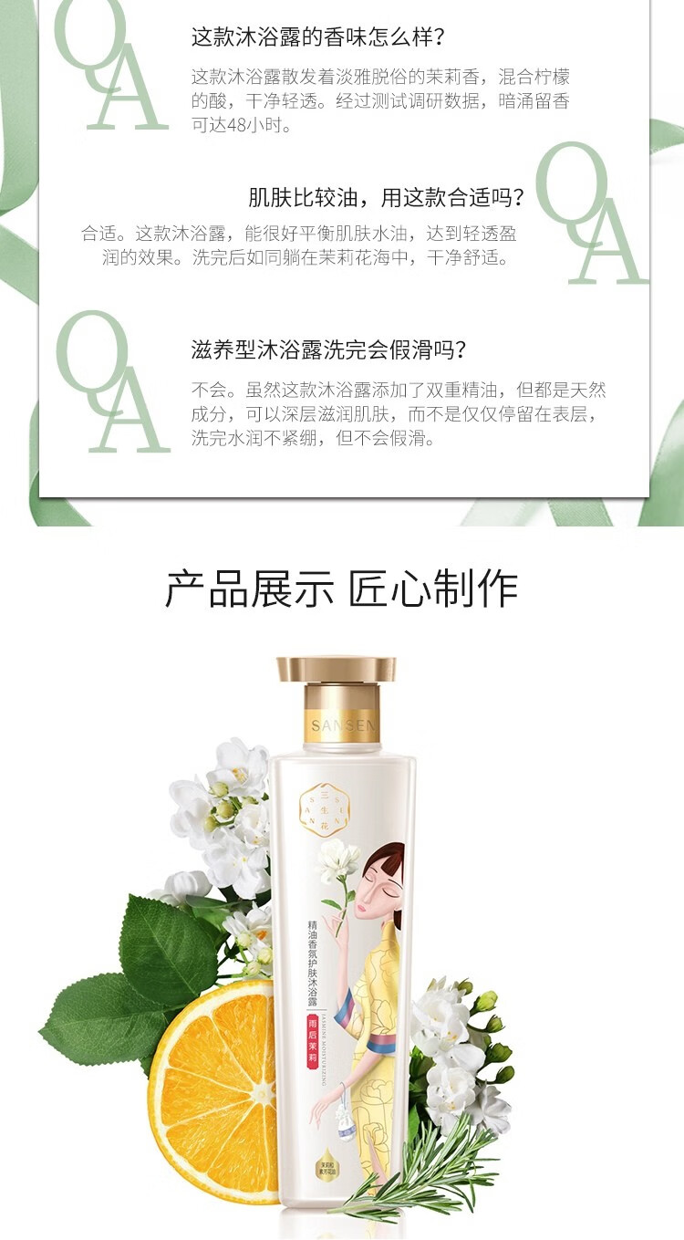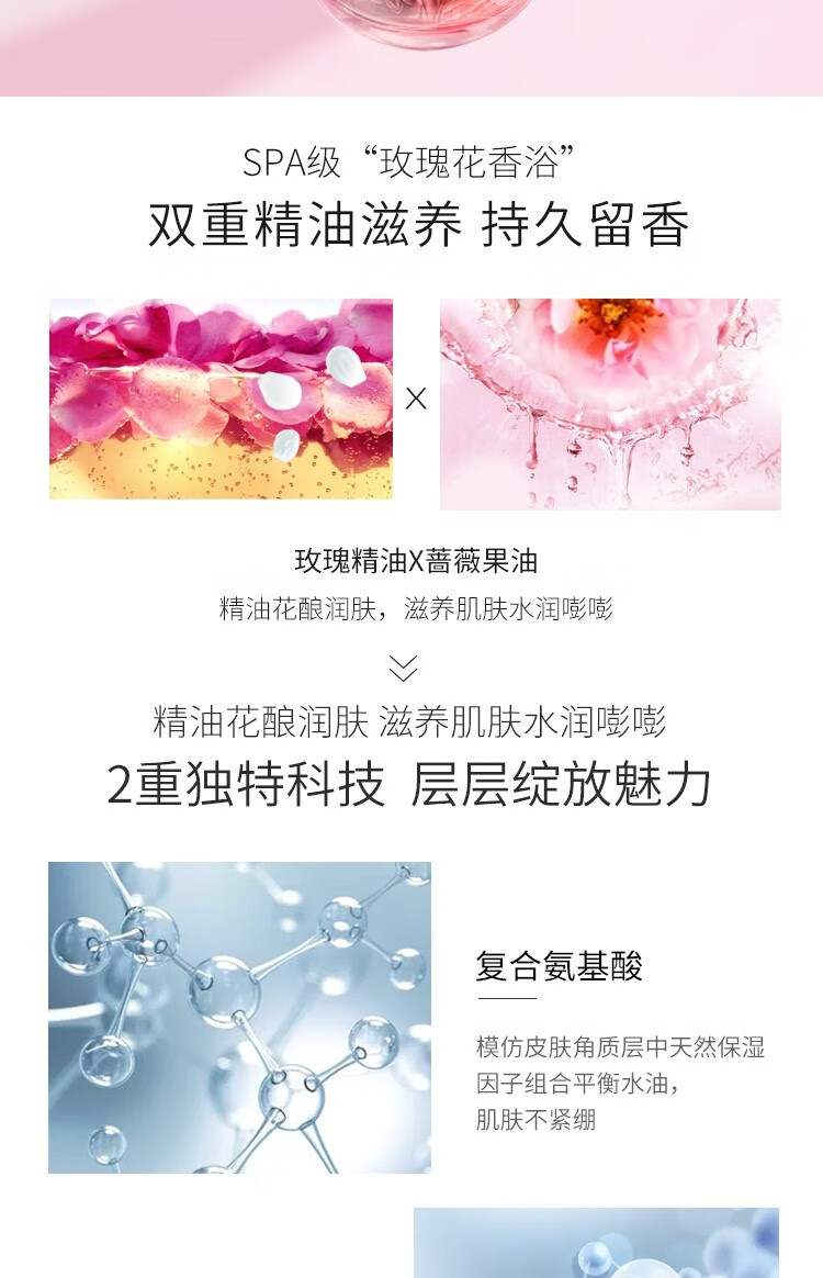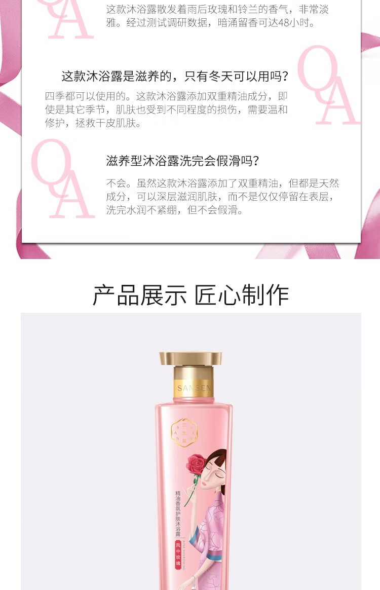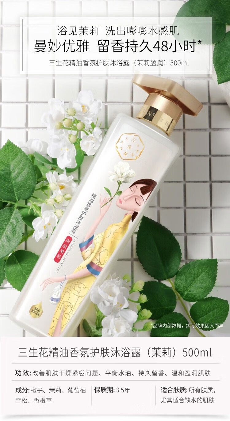 商品标题:百雀羚500ml三生花温和草本精粹 精油香氛护肤沐浴露(玫瑰滋养)(瓶)