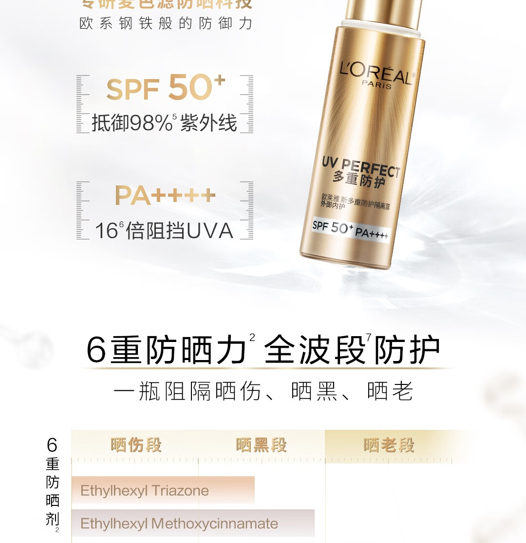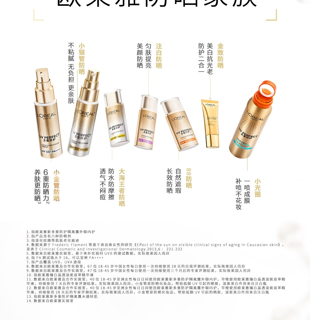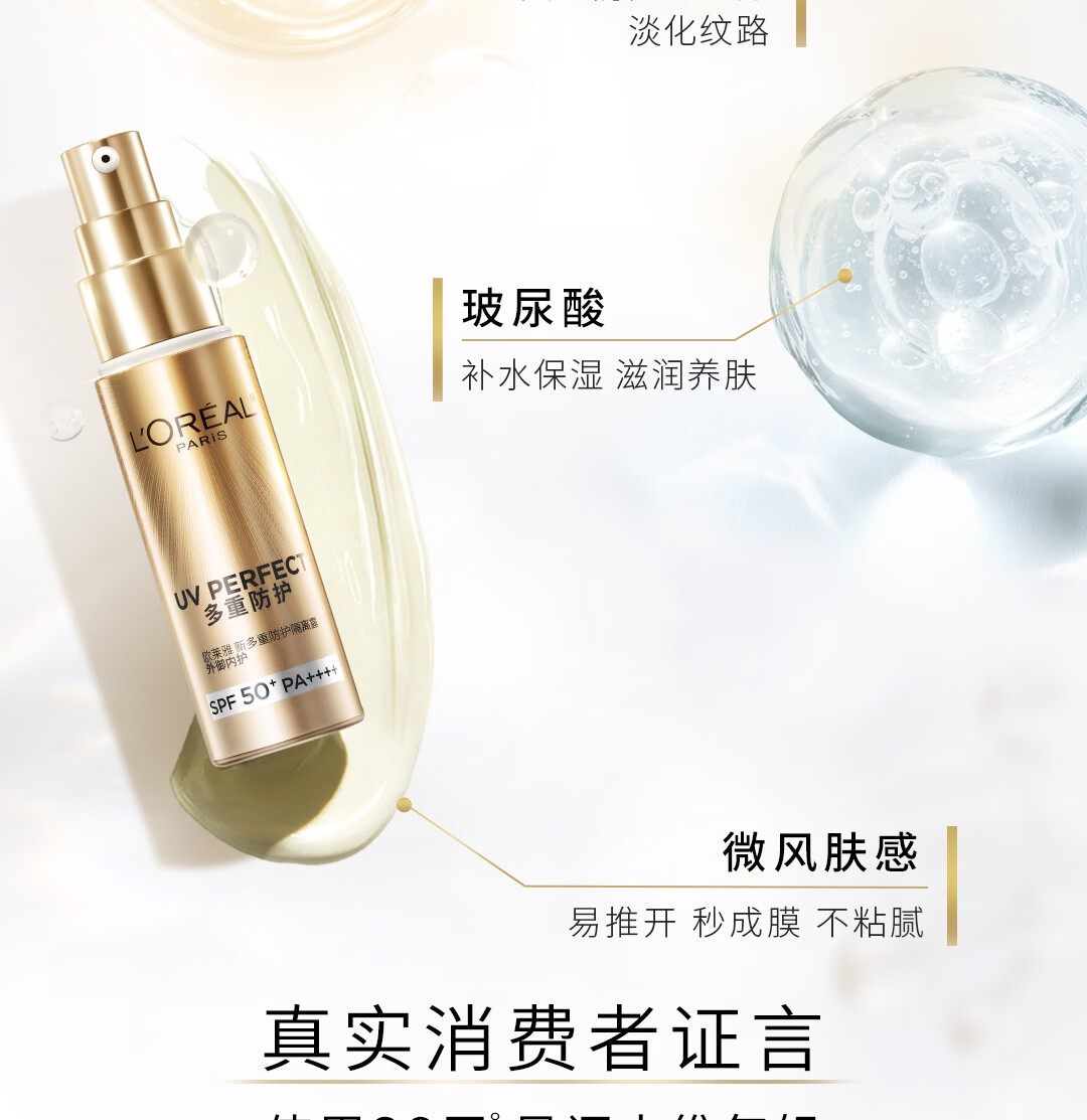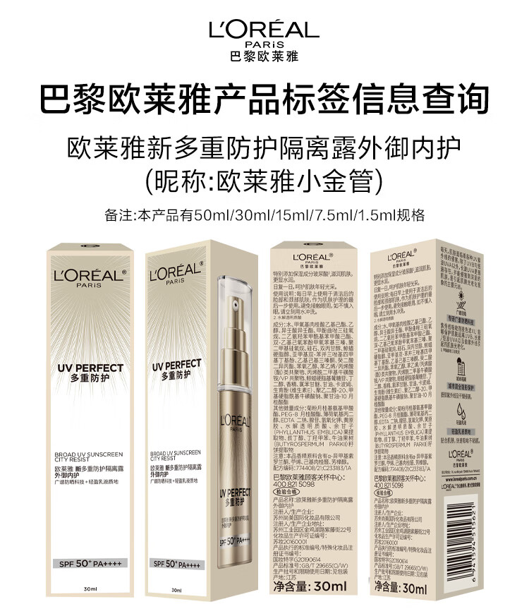 商品标题:欧莱雅(L'OREAL)SPF50+防晒小金管30ml(单位:支)