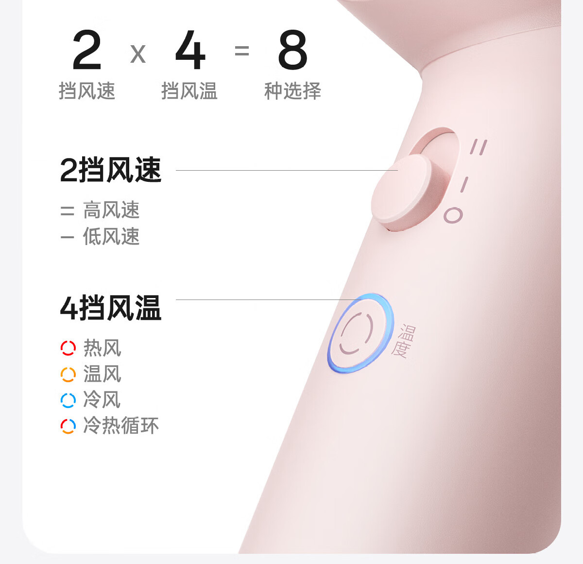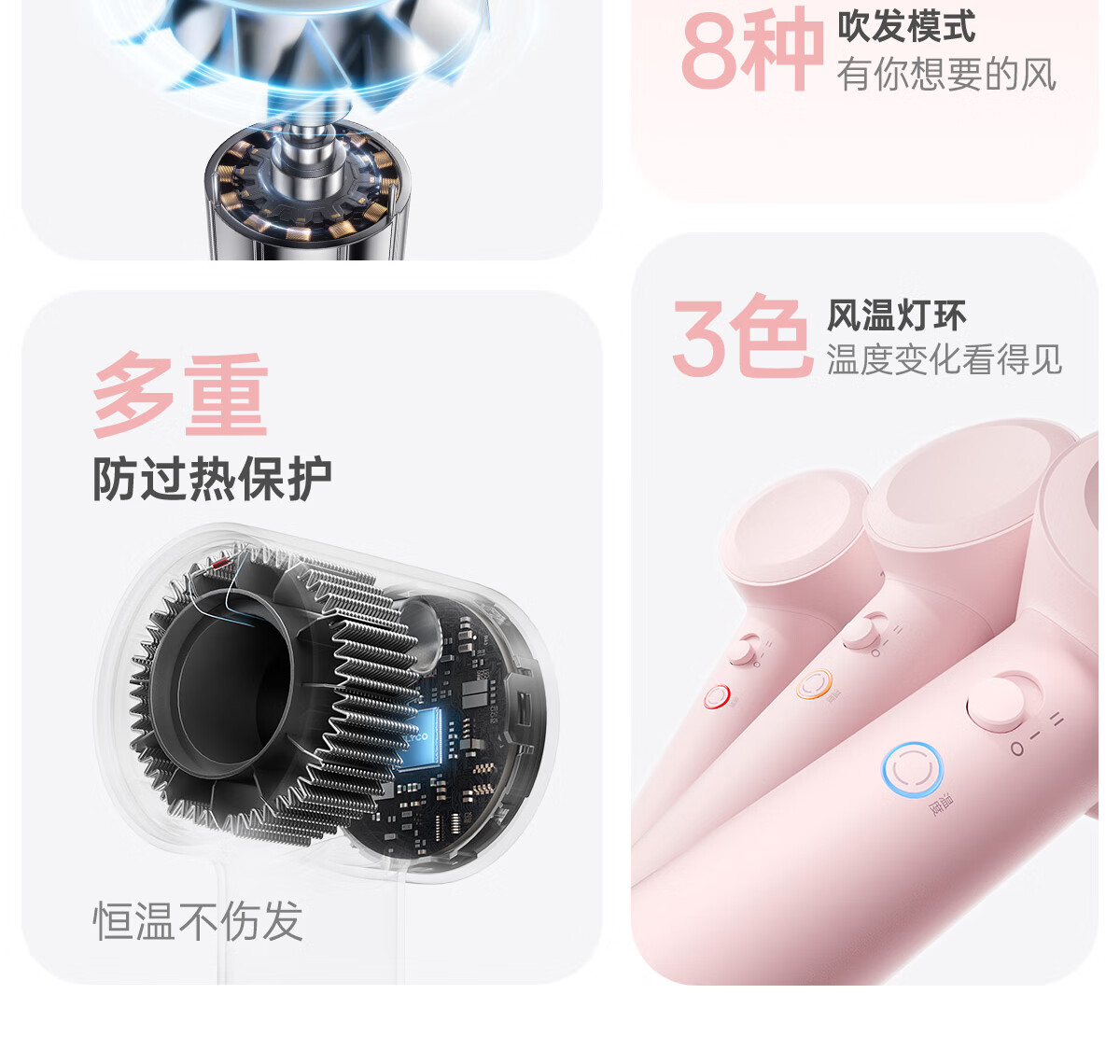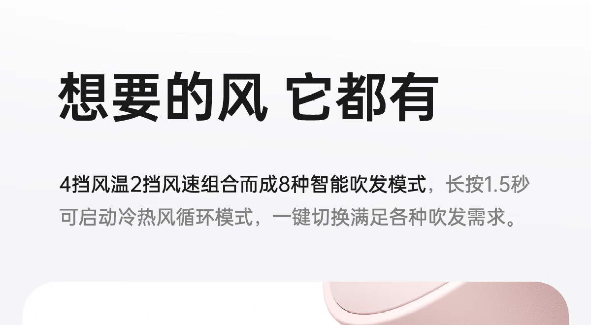 特色功能:动态冷热风,高速吹风