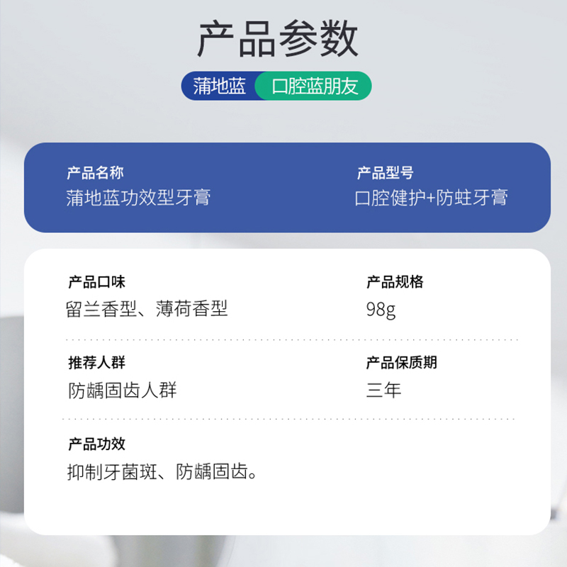 商品标题:蒲地蓝口腔健护抗防蛀功效牙膏薄荷98g(单位:支)