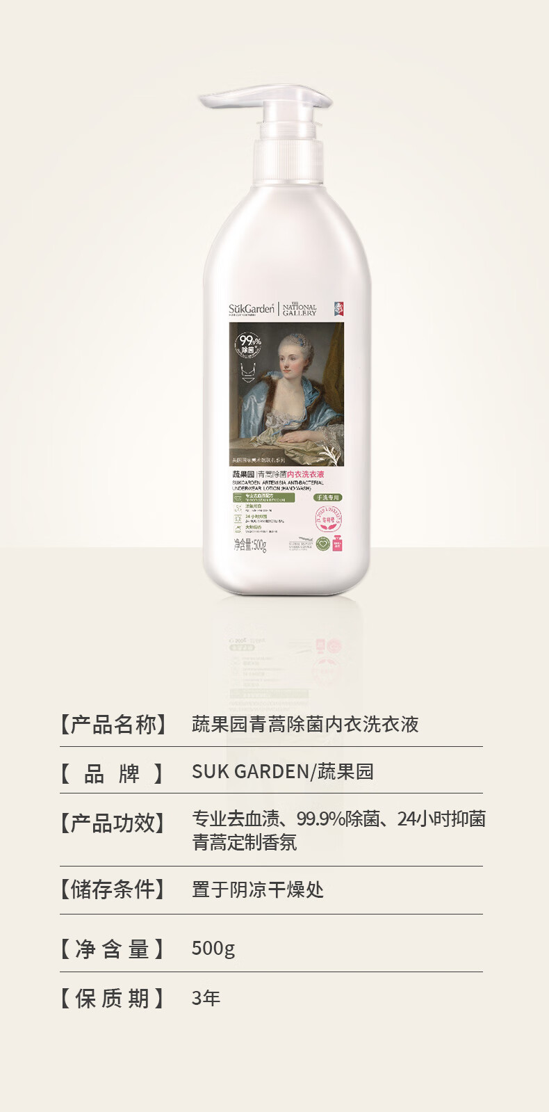 蔬果园 内衣清洗液青蒿除菌内衣洗衣液500g(单位:瓶)