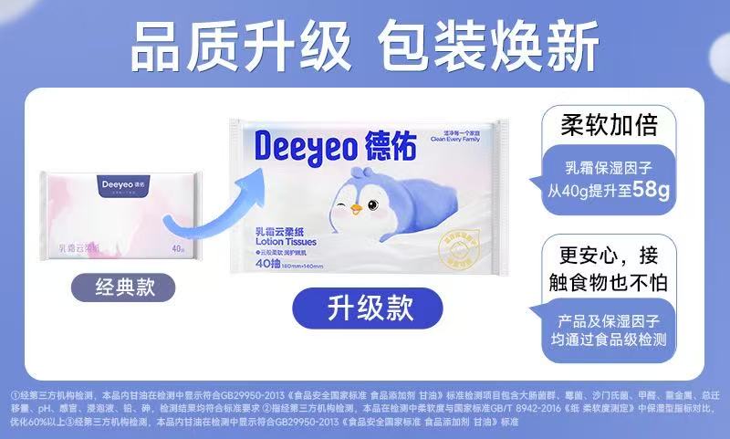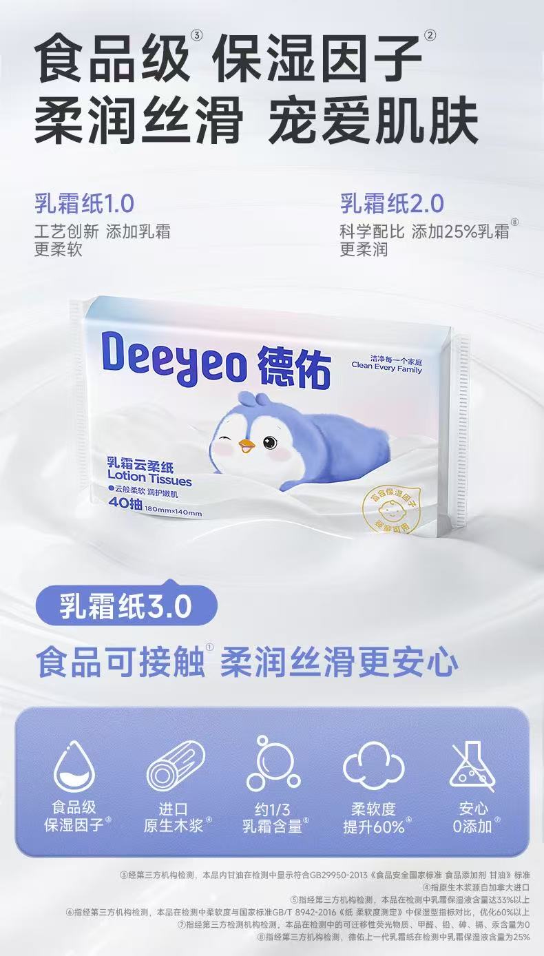 德佑 高端乳霜云柔纸便携装40抽*30包 2001DYST065R06 乳霜抽纸 40抽*30包 (单位:包)