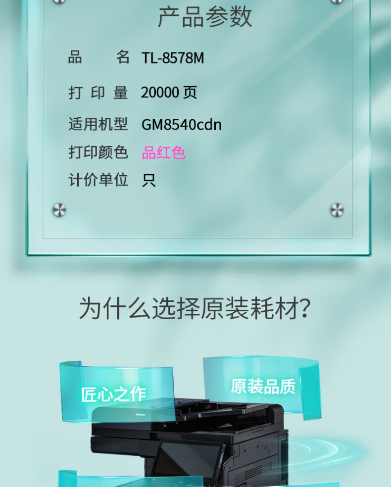 商品标题:立思辰(LANXUM) TL-8578M 适用GM8540cdn 打印量20000页 带芯片 粉盒 (计价单位:只) 品红色