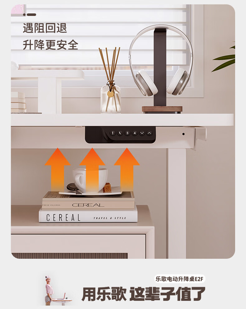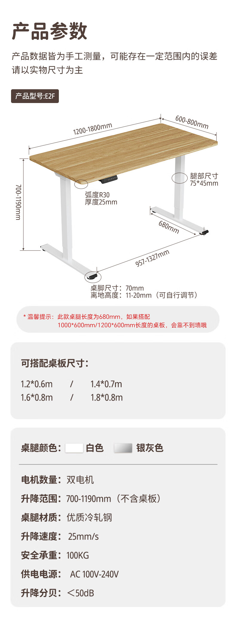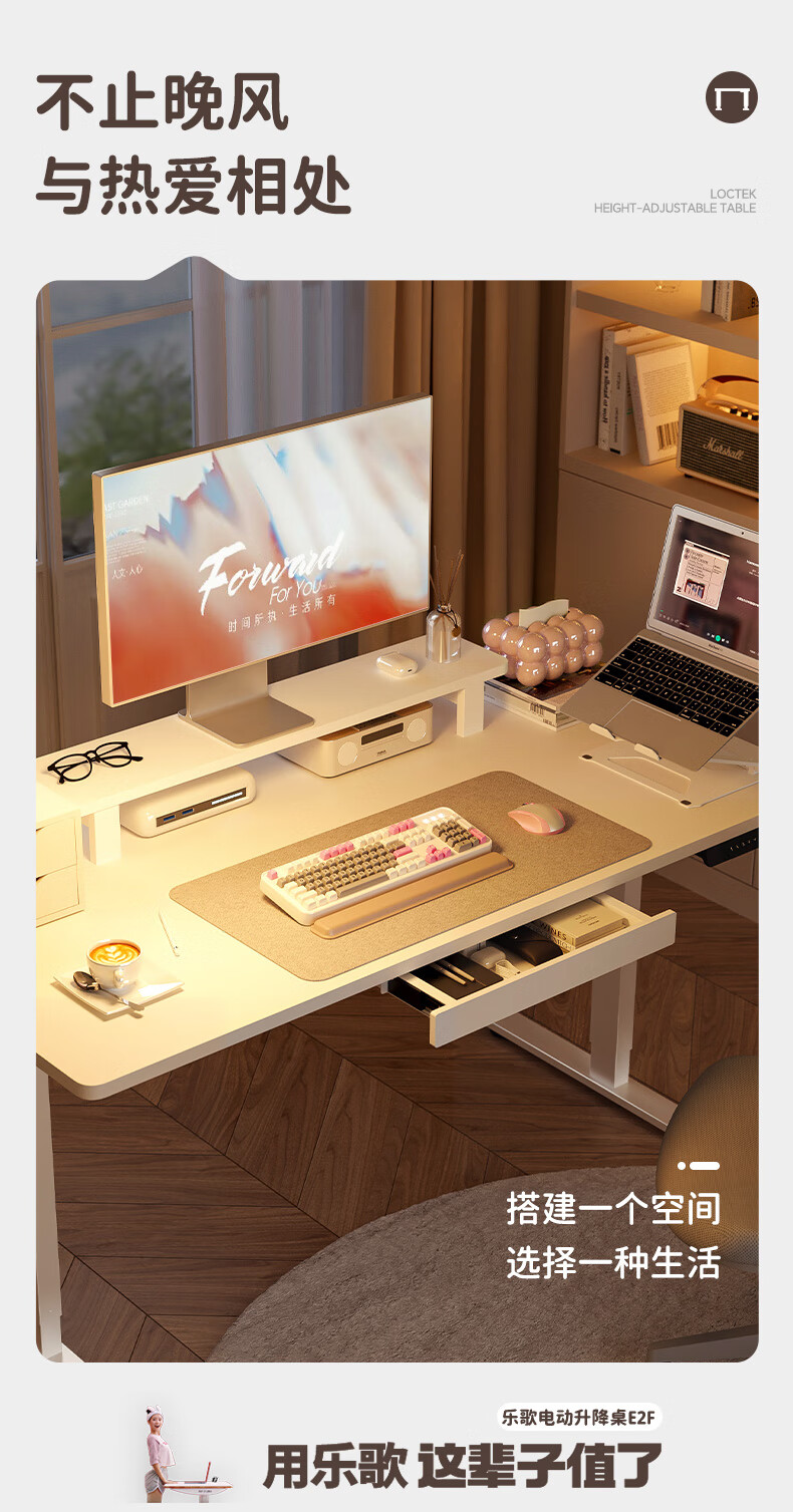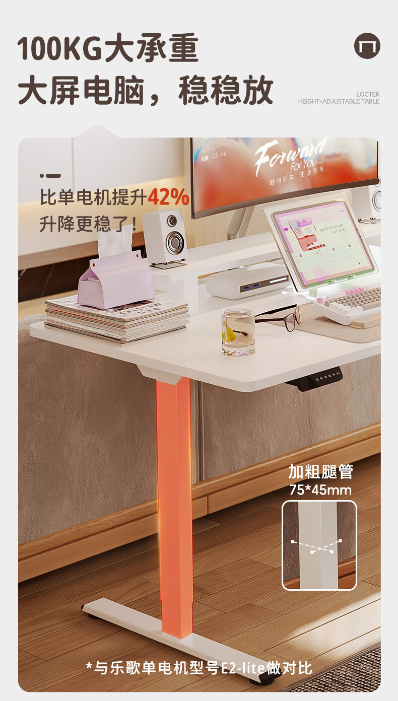 乐歌E2F电动升降桌双电机升降范围:700*1190mm承重100kg 白色(单位:张)
