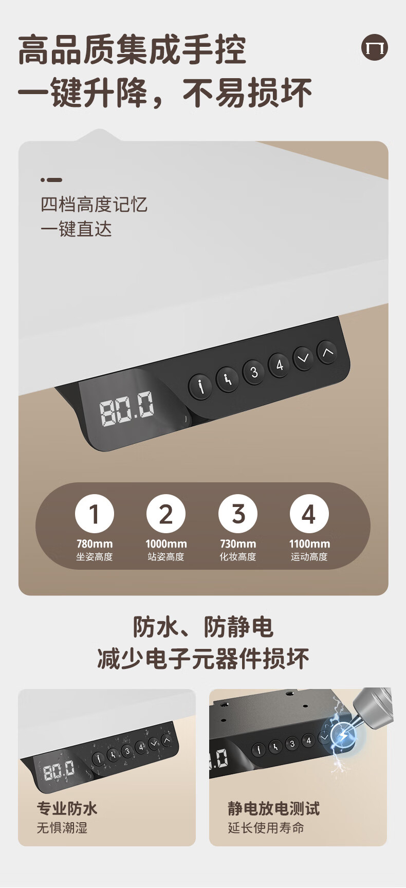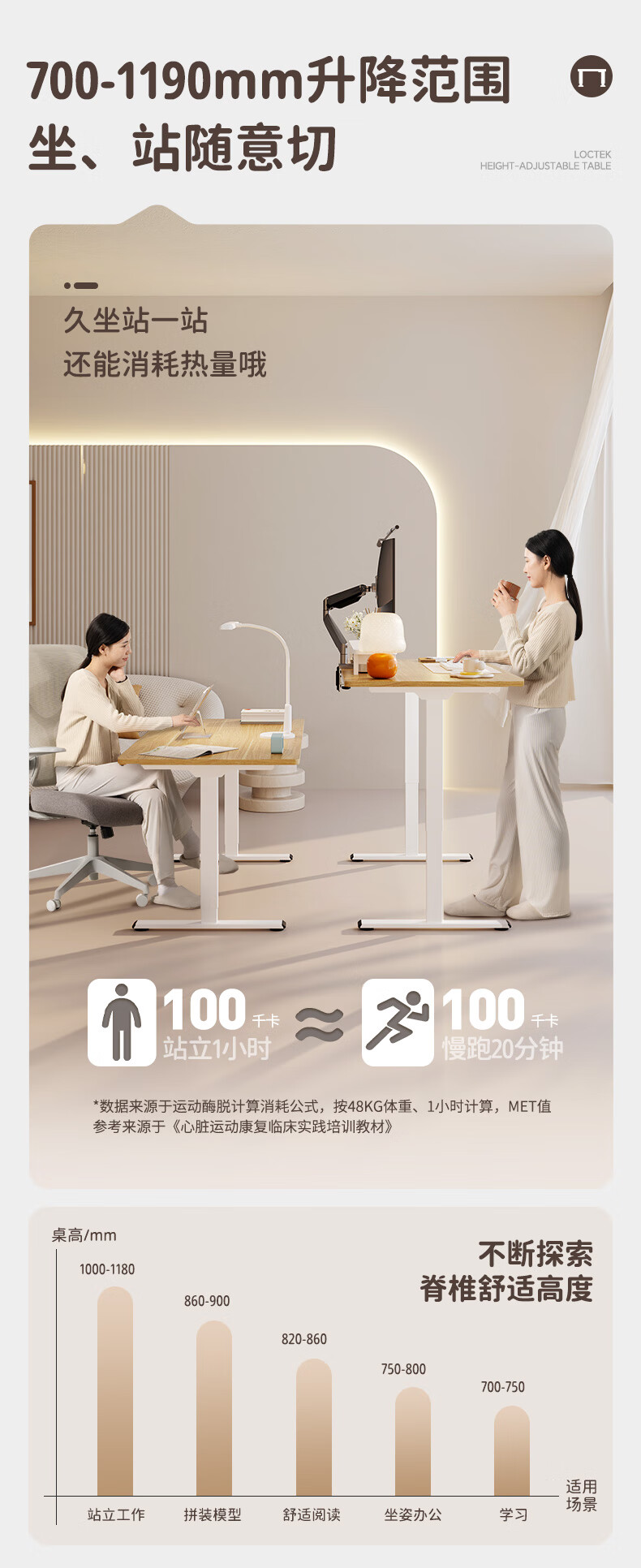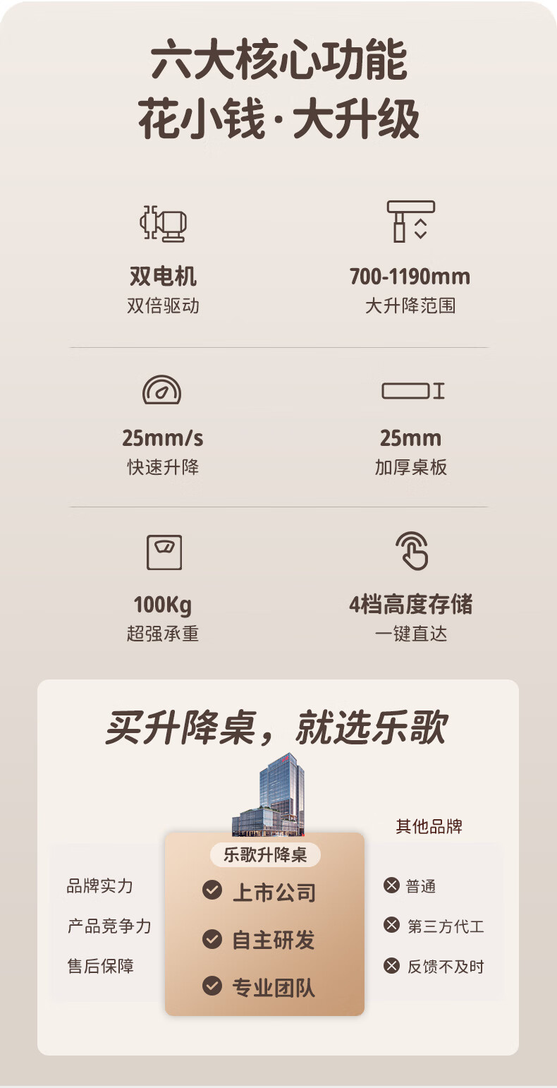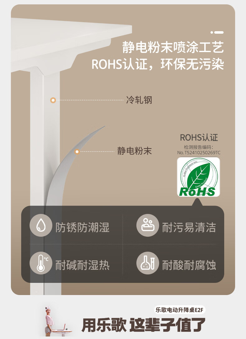 乐歌E2F电动升降桌双电机升降范围:700*1190mm承重100kg 白色(单位:张)