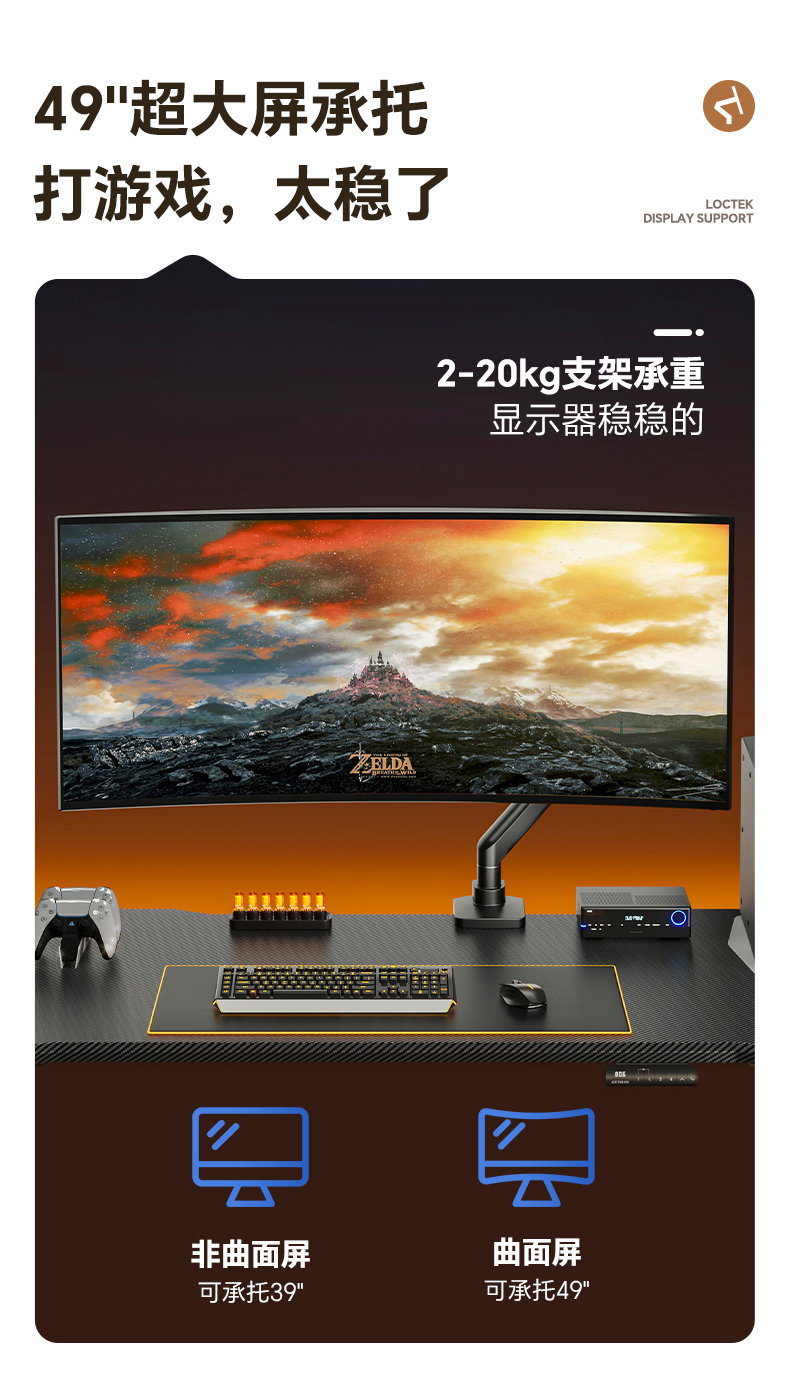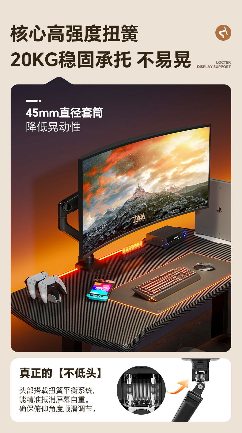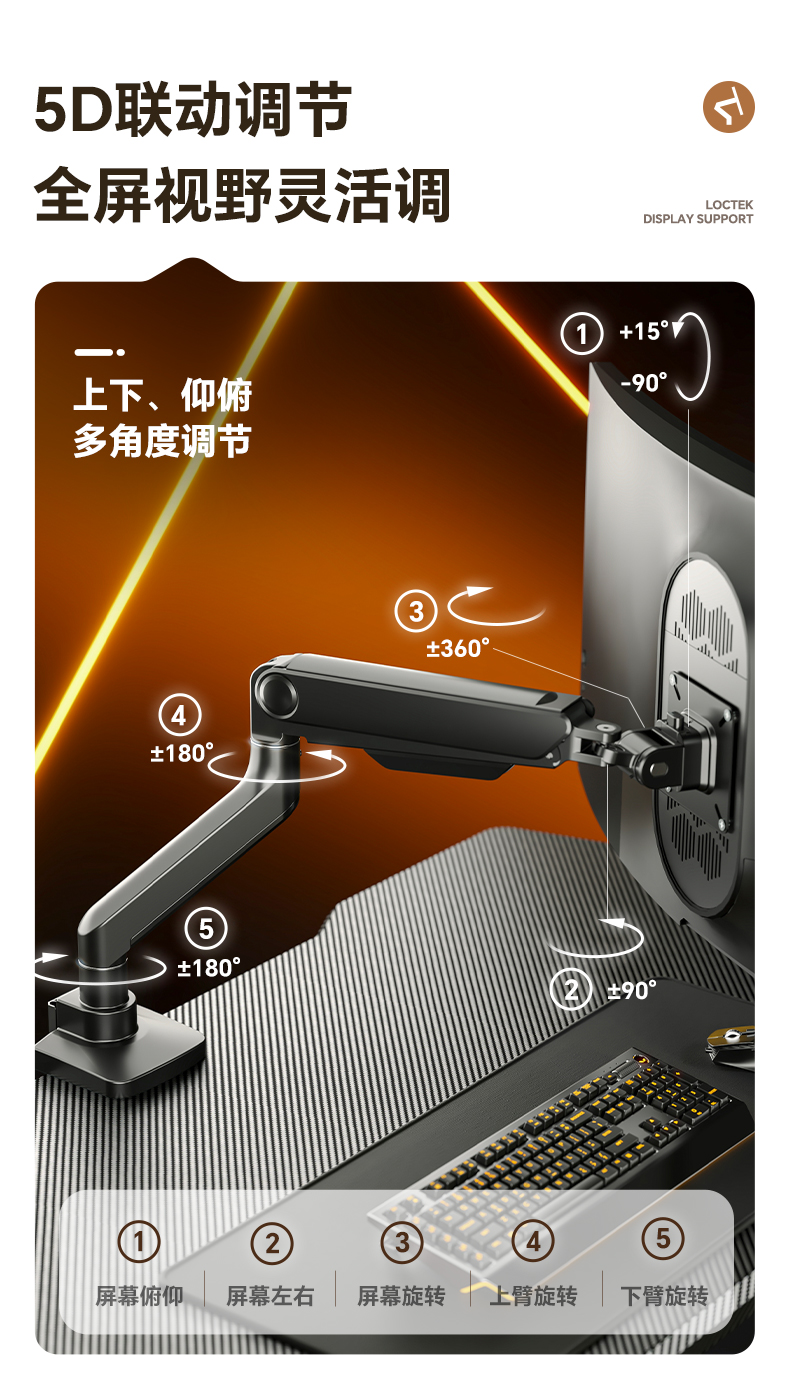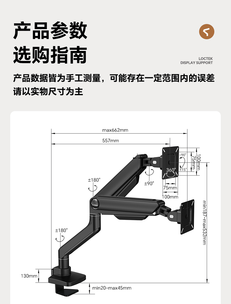乐歌(Loctek) ZQ7黑 显示器支架承重2-20kg(个)