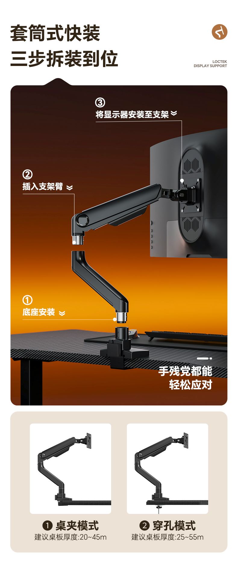 安装方式:桌夹式,打孔安装