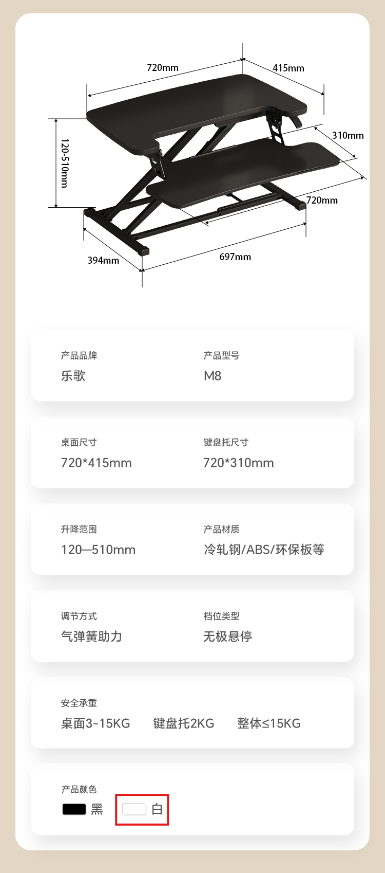 乐歌(Loctek)M8白升降台 显示器增高架 桌面尺寸:720*415mm (个)