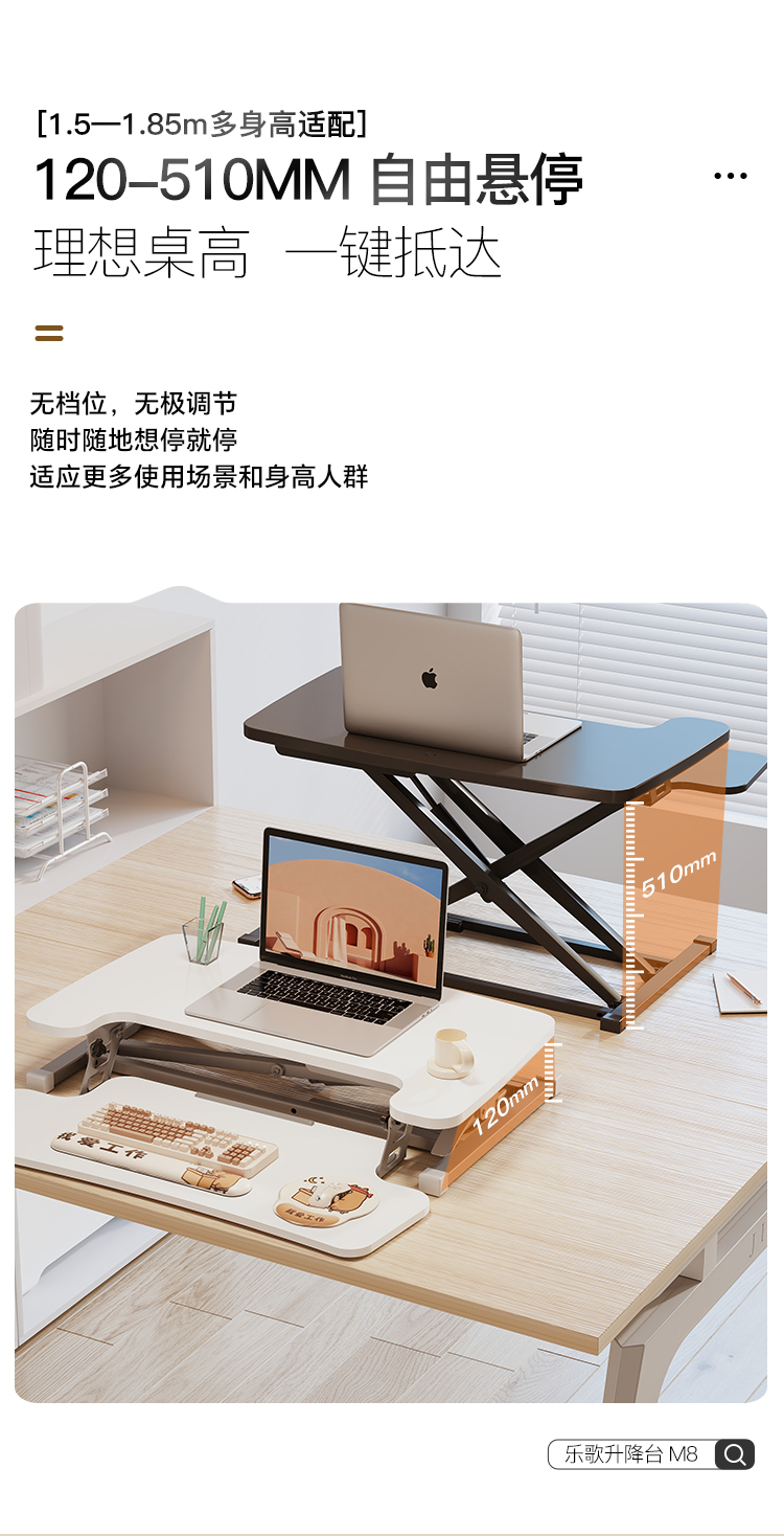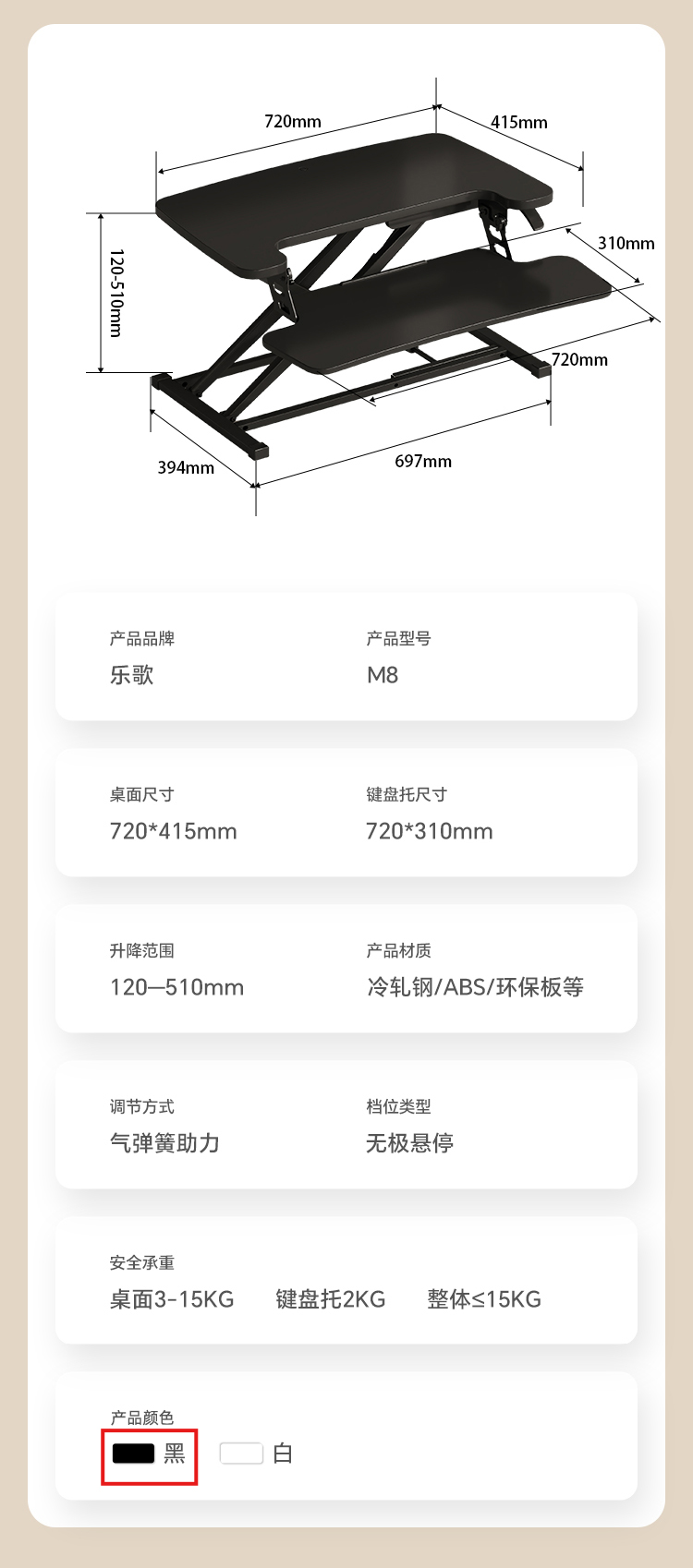 商品标题:乐歌 M8黑色升降台 桌面尺寸 720*415mm(台)