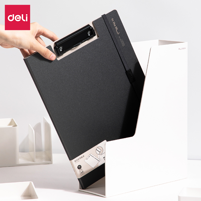 得力NS180-纽赛竖款折页板夹(黑烟色)(个)