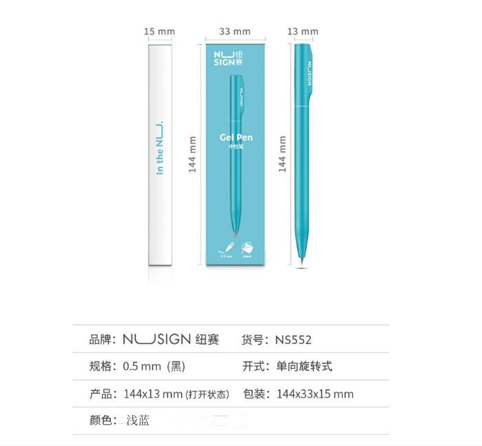 商品标题:纽赛NS552中性笔0.5mm子弹头(浅蓝)(单位:支)
