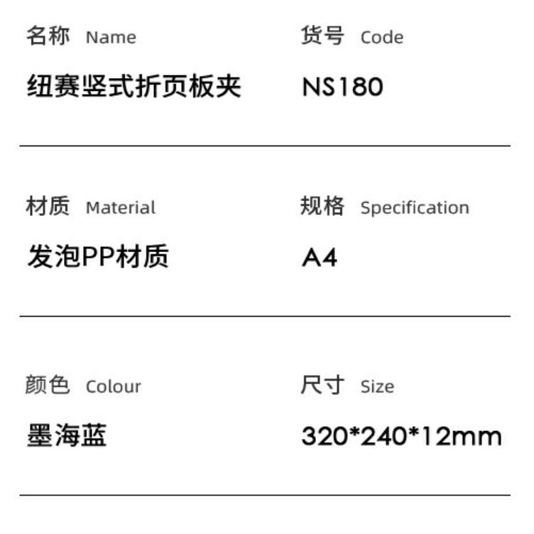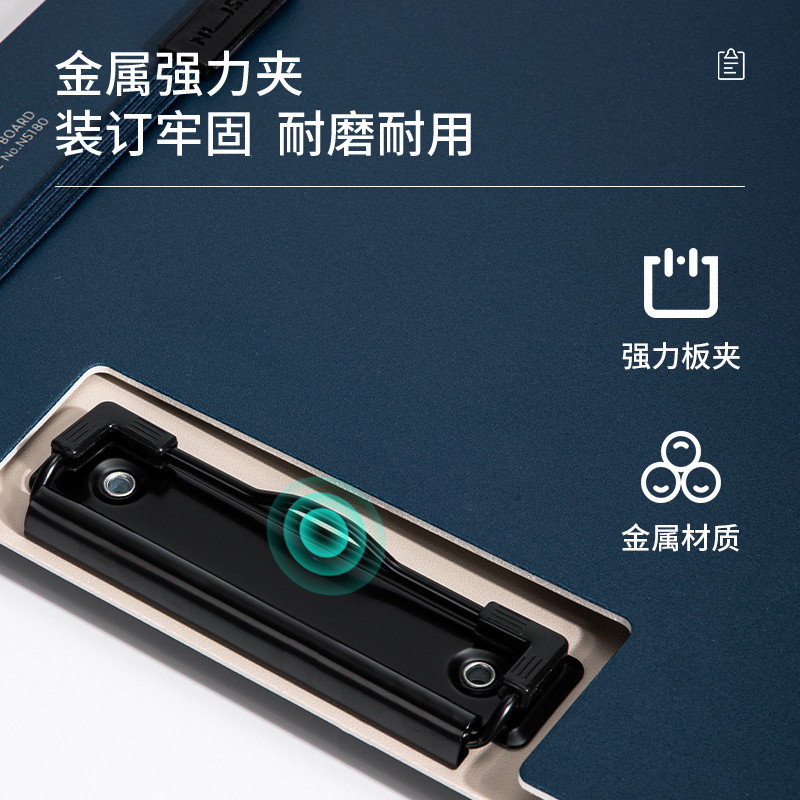 商品标题:得力NS180-纽赛竖款折页板夹(墨海蓝)(个)