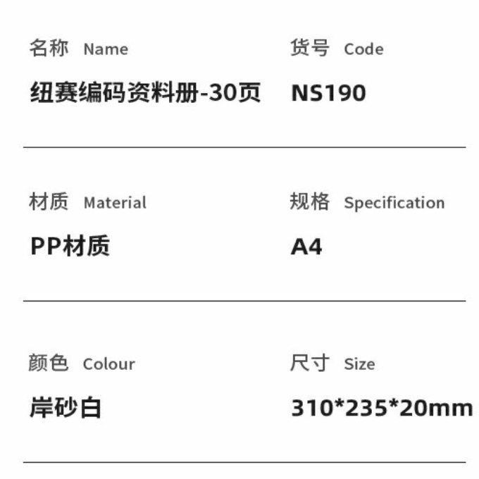 商品标题:得力NS190纽赛30页编码资料册(岸砂白)(个)