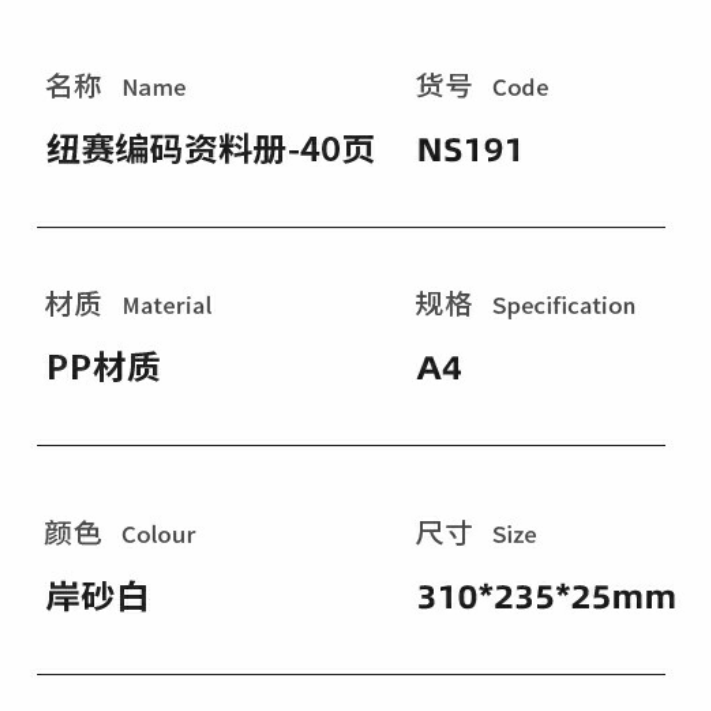 商品标题:得力NS191纽赛40页编码资料册(岸砂白)(个)
