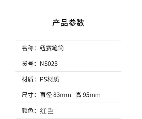 商品标题:纽赛NS023笔筒83*95mm(红色)(单位:个)