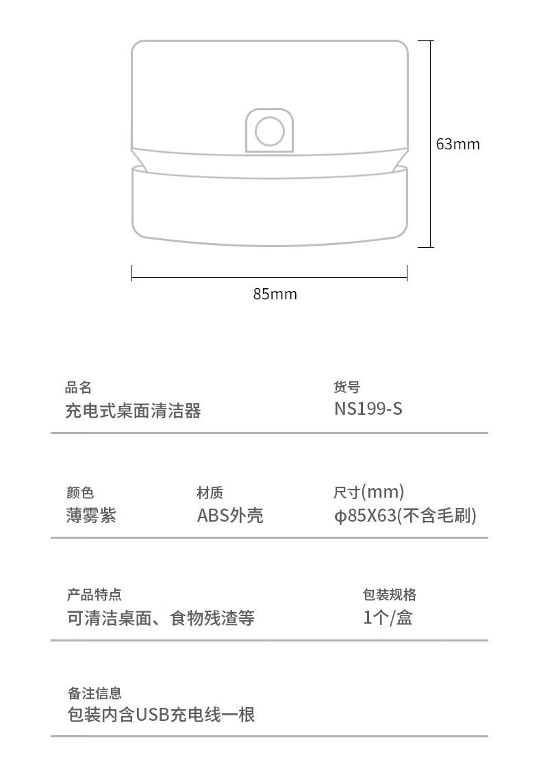 商品标题:纽赛NS199-S充电式桌面清洁器(紫)(盒)
