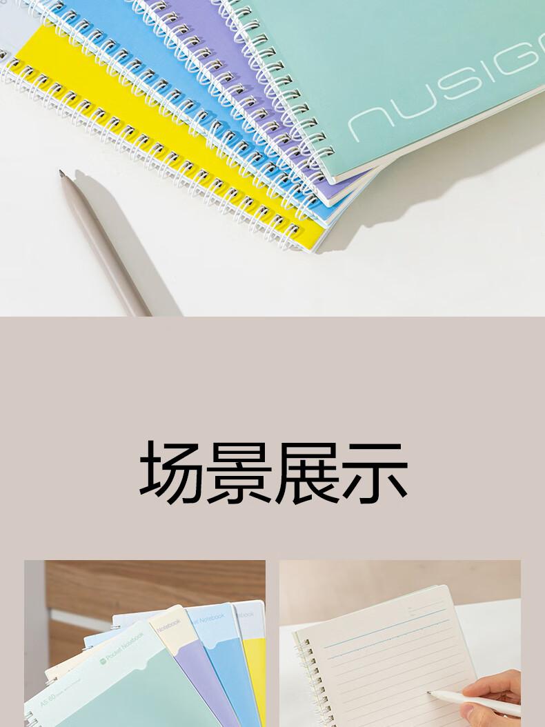 商品标题:纽赛NS354插袋PP螺旋本A5-60张(天青灰)(本)