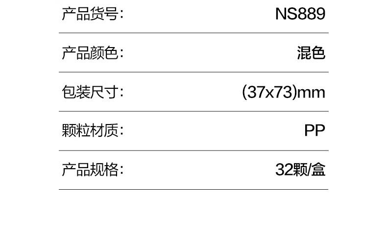 商品标题:纽赛NS889字母颗粒PP盒装(混)(32颗/盒)