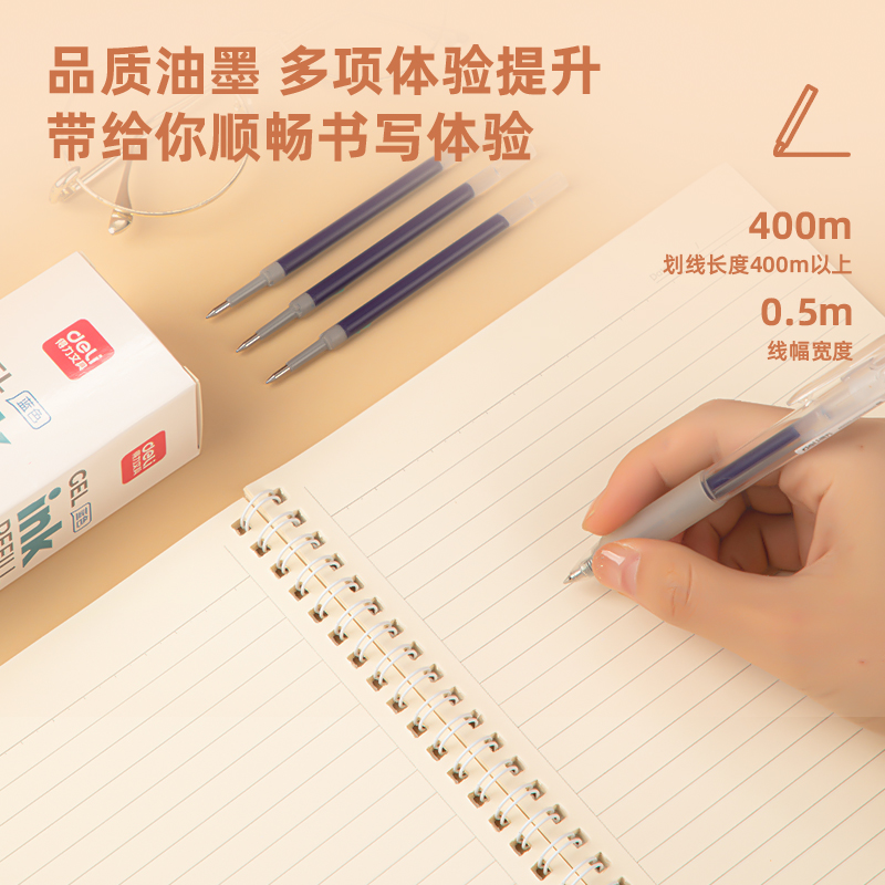 得力6906H臻顺滑中性笔替芯0.5mm按动子弹头(蓝)(支)