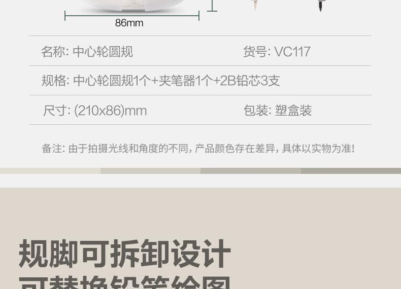 商品标题:得力VC117中心轮圆规(混色)(套)
