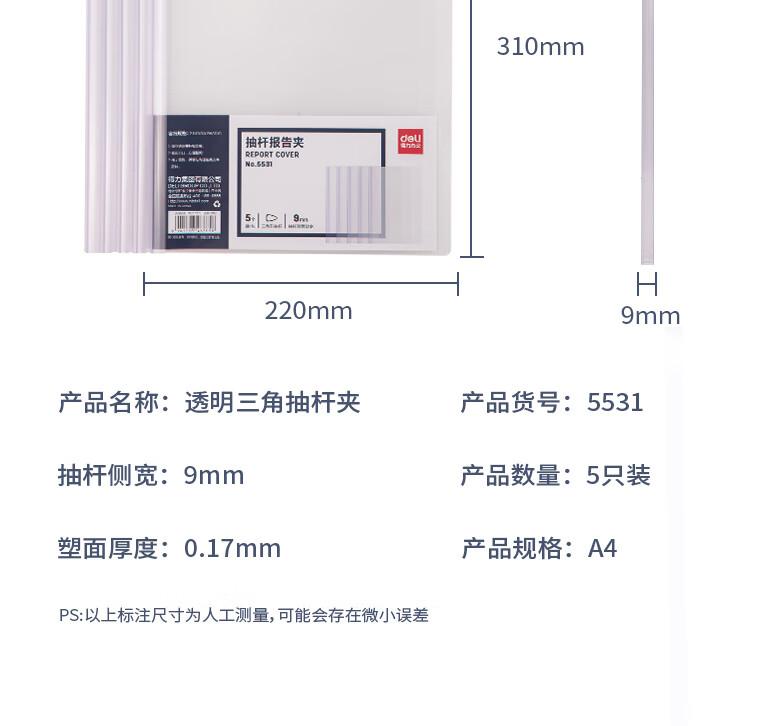 得力5531透明三角杆背宽9mm(透明)(5个/包)