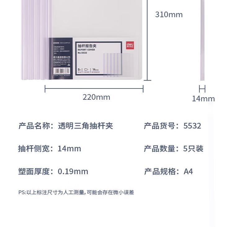 得力5532透明三角杆背宽14mm(透明)(5个/包)