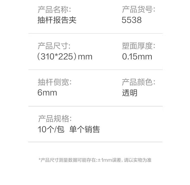 商品标题:得力5538抽杆夹6mm水滴杆(透明)(个)