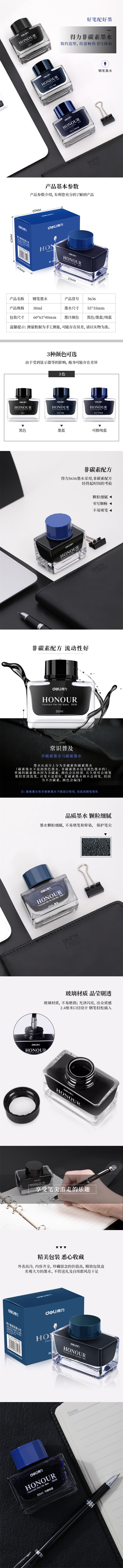 商品标题:得力(deli)S636钢笔墨水(1瓶/盒)(单位:盒)墨蓝