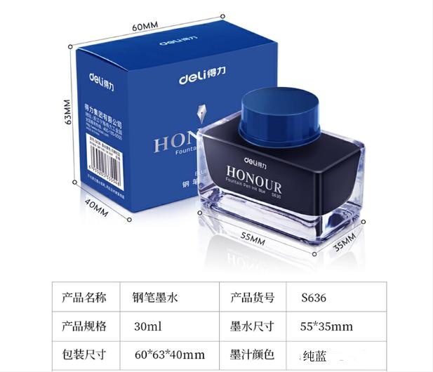 得力(deli)S636钢笔墨水(1瓶/盒)(单位:盒)蓝