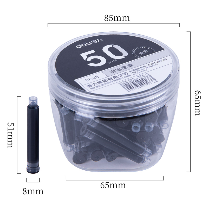 商品标题:得力S645钢笔墨囊(黑)(50支/桶)(单位:桶)