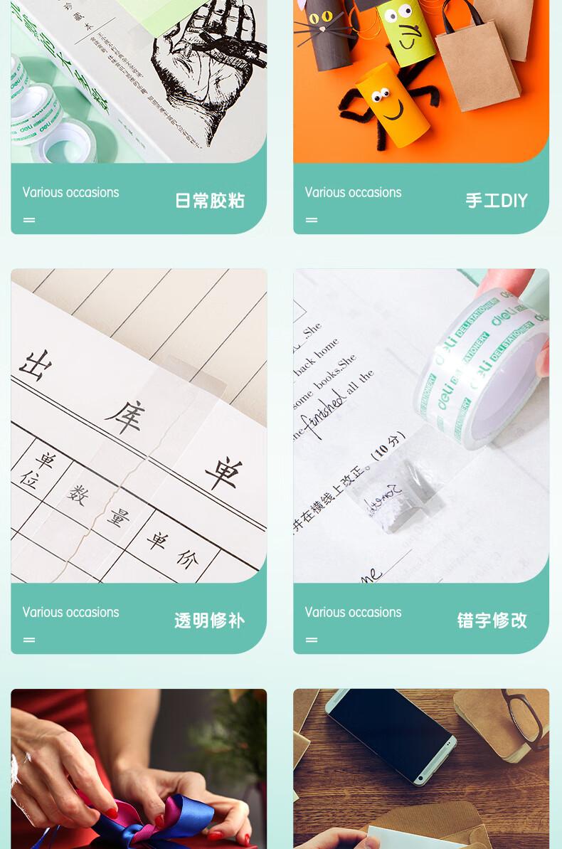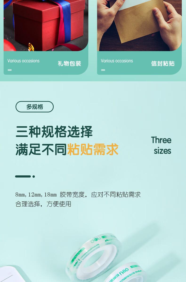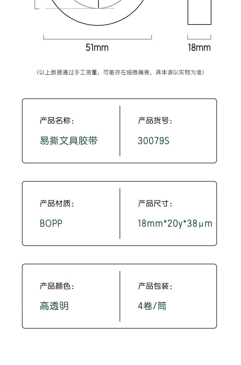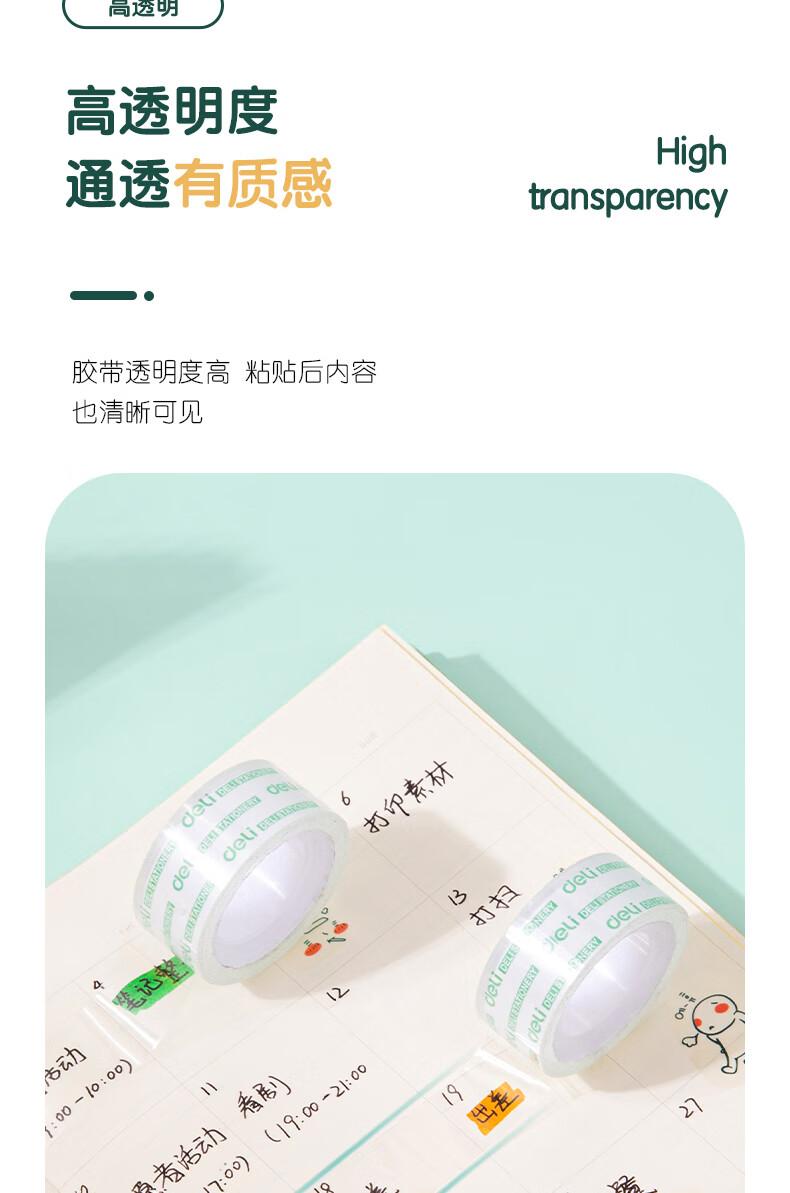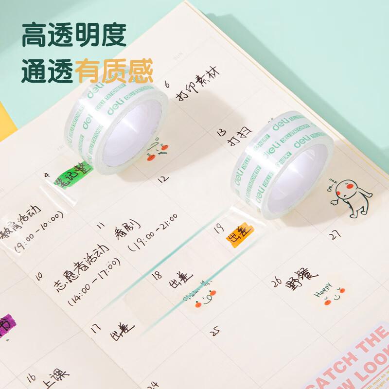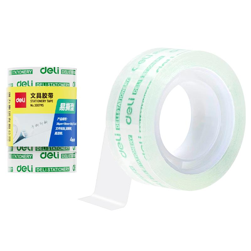 得力30079S易撕型文具胶带18mm*20y*38μm(高透)(4卷/筒)