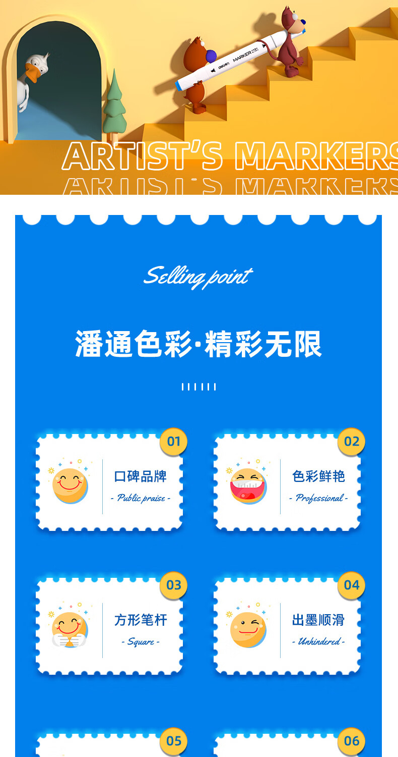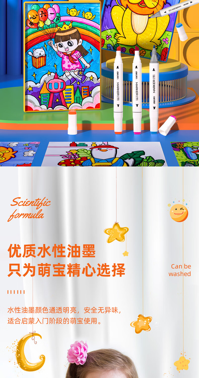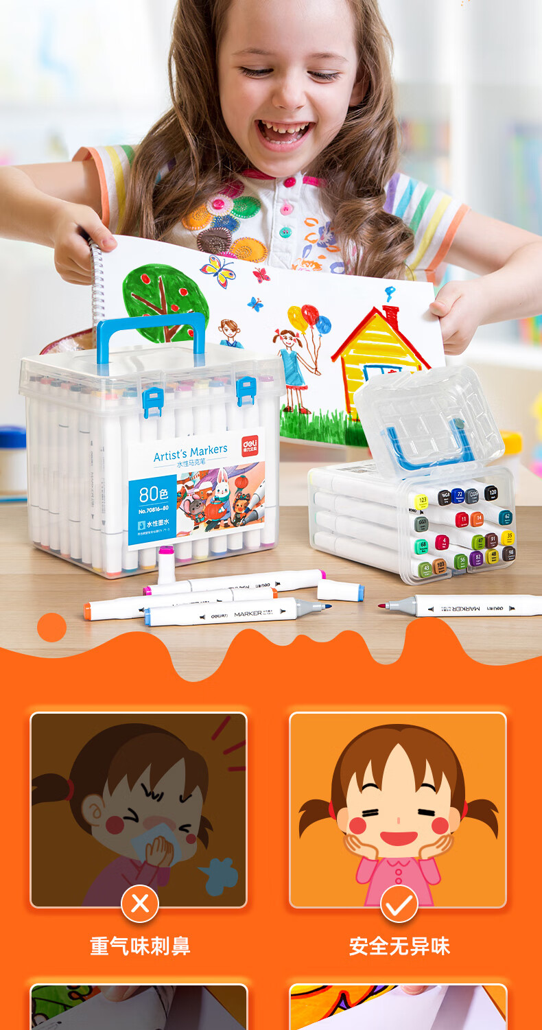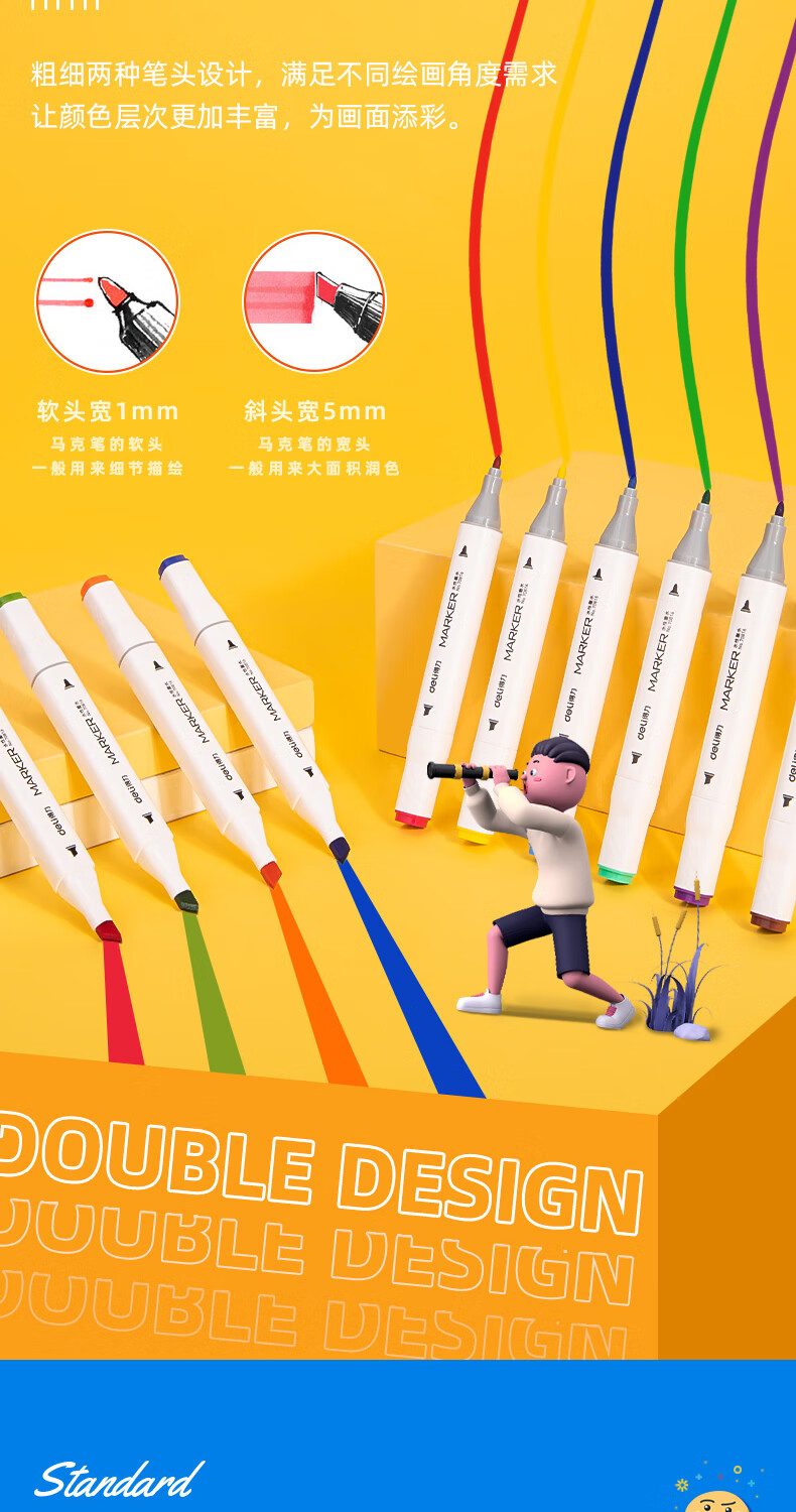 商品标题:得力70816-12_PP桶装水性方杆马克笔(混)(12色/筒)