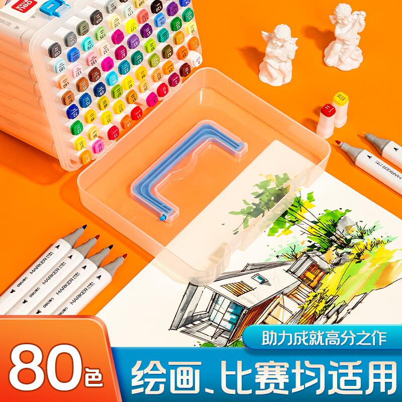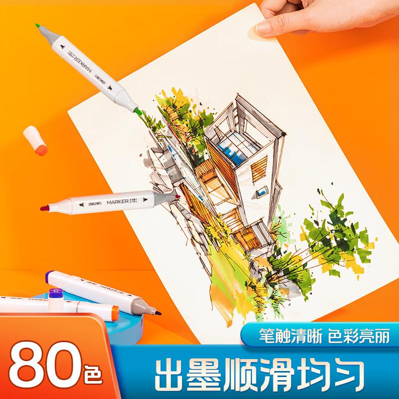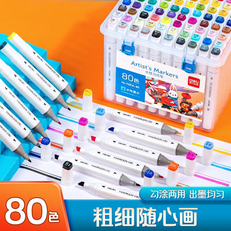 商品标题:得力70816-80_PP桶装水性方杆马克笔(混)(80色/筒)