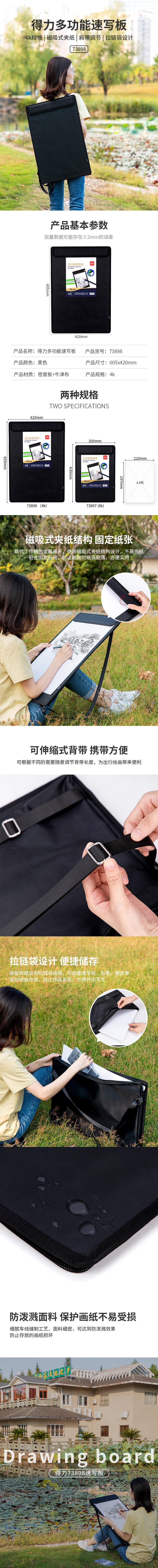 商品标题:得力73898_4K多功能速写板(黑色)(块)