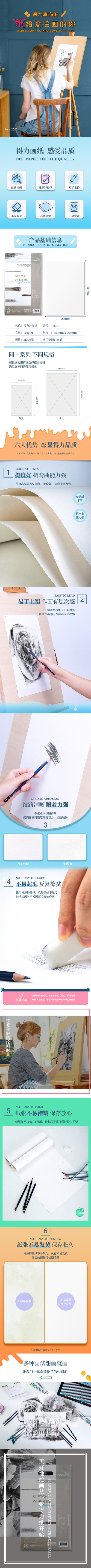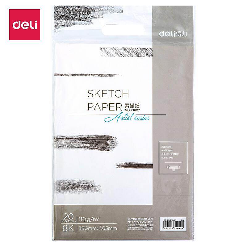 商品标题:得力73607素描纸(白)-110g-8k-(20张/包)