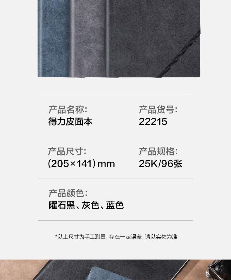 得力22215商务插笔皮面本207mm*140mm/ 96张(蓝色)