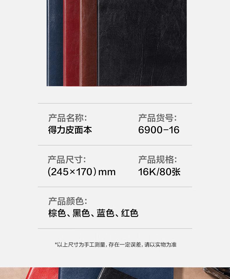 得力6900-16皮面本245mm*170mm80张(蓝色)(本)