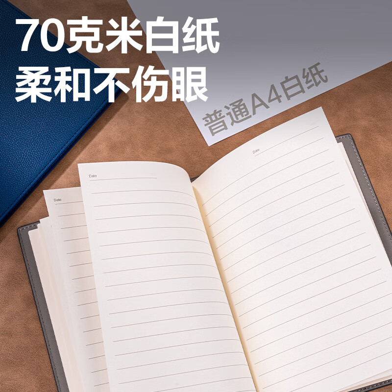 商品标题:得力7900皮面本轻商务 16K-245mm*171mm/80张(远山蓝)(本)
